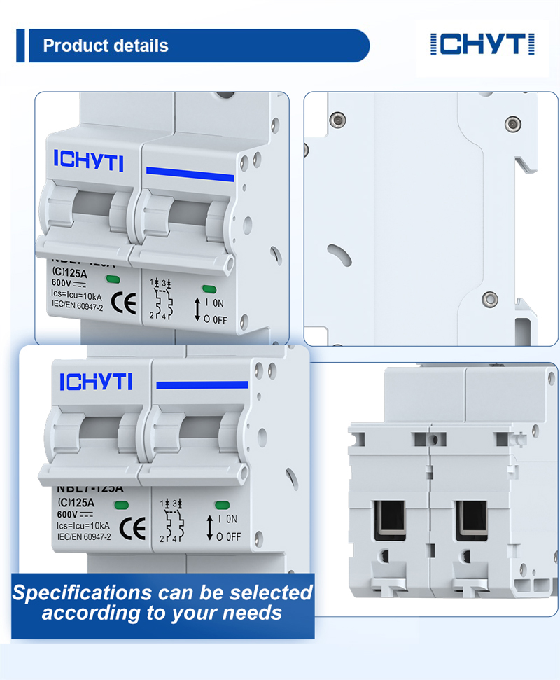 Em resposta às necessidades de aplicação dos clientes nas áreas de armazenamento de energia solar e novas infraestruturas, o fabricante ICHYTI lançou um novo MCB NBL7-125A sem polaridade 125A DC. Este disjuntor CC é adequado para cenários de circuito com uma tensão operacional nominal de DC1000V/DC600V e uma faixa de corrente nominal de 80A a 125A. Ele pode alcançar funções de proteção contra curto-circuito e proteção contra sobrecarga para sistemas DC, ao mesmo tempo que serve como isolamento e controle de circuito.