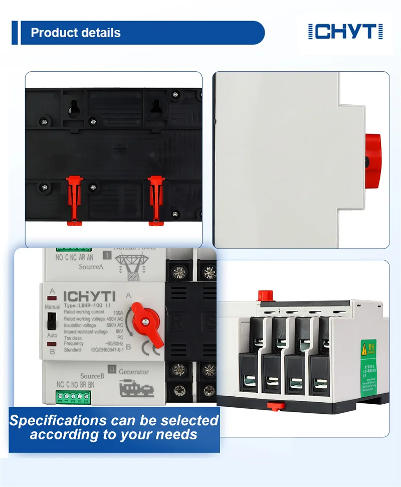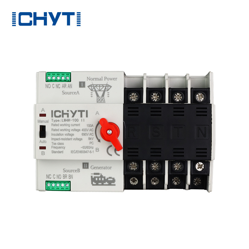 China Factory ICHYTI Wholesale Buy Discount interruptor de comutação automática monofásico tem três funções de comutação no sistema de fonte de alimentação de uma rede elétrica trifásica de quatro fios, incluindo comutação automática de fonte de alimentação em espera, fonte de alimentação de backup e rede elétrica e gerador. Ele pode detectar o valor efetivo da tensão trifásica e o valor efetivo da tensão de fase e a fase de duas fontes de energia em tempo real e alternar automaticamente de fontes de energia anormais para fontes de energia normais em caso de sobretensão, subtensão ou perda de fase em qualquer fase.